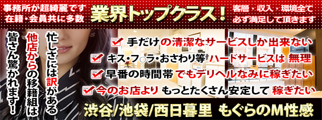 西日暮里・池袋もぐらのM性感 ワンフロア全て個室待機!ノンストレスで安定した高収入を!